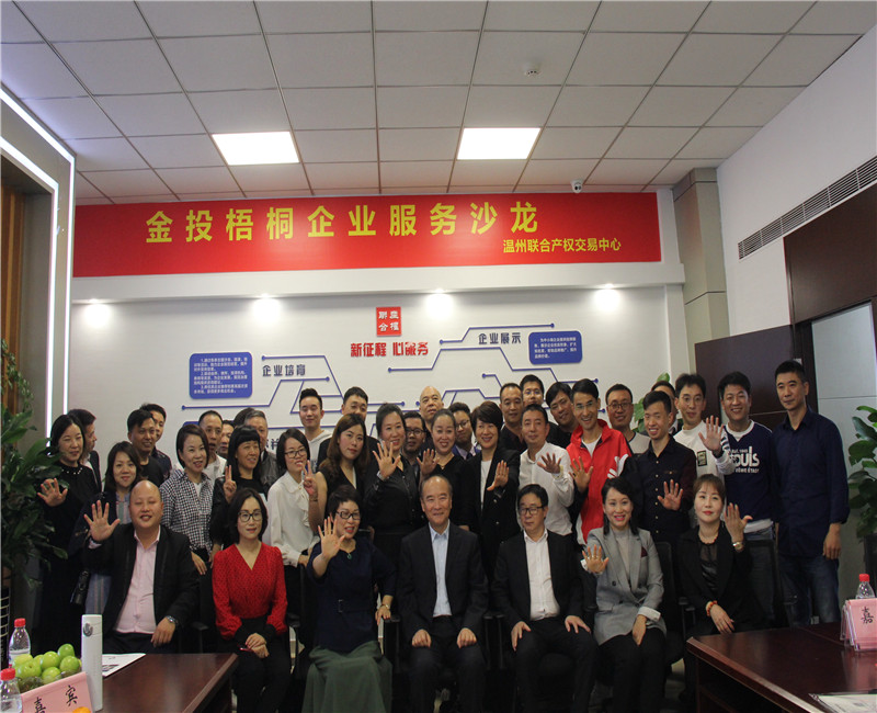11月24日下午,溫州聯(lián)合產(chǎn)權(quán)交易中心有限公司與溫州卡耐基口才培訓(xùn)學(xué)校聯(lián)合舉辦了2019第九期金投梧桐企業(yè)服務(wù)沙龍——“茶話會(huì).話商機(jī)”。本次活動(dòng)聚集了各界行業(yè)40多位企業(yè)家、創(chuàng)業(yè)家以及知名專家,以“2019年溫州企業(yè)面臨五大困境”為主題,通過嘉賓分享、專家交流互動(dòng)的形式,幫助溫州企業(yè)解決發(fā)展中遇到的困境與瓶頸,引領(lǐng)企業(yè)創(chuàng)新發(fā)展。