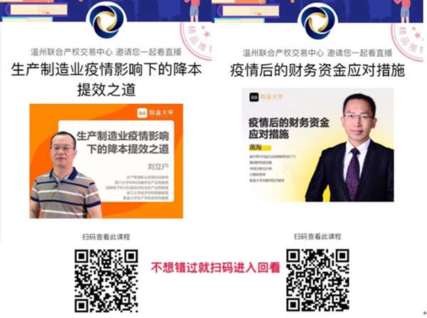 3月10日,溫州聯(lián)合產(chǎn)權(quán)交易中心聯(lián)合集盒大學(xué),共同開(kāi)設(shè)了第二期“金投梧桐與您同行”助企公益網(wǎng)絡(luò)大講堂,助力企業(yè)復(fù)工復(fù)產(chǎn),為數(shù)百家溫州區(qū)域資本市場(chǎng)的培育企業(yè)提供在線惠企服務(wù)。